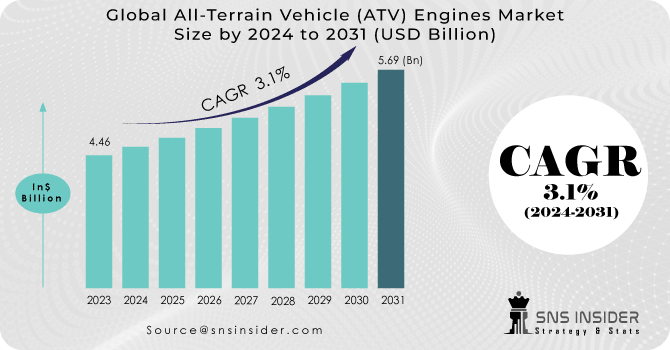 Valued at USD 4.46 billion in 2023, the All-Terrain Vehicle (ATV) Engines Market Forecast is anticipated to grow to USD 5.69 billion by 2031, expanding at a CAGR of 3.1% from 2024 to 2031. The global market research evaluation includes a detailed analysis of categories, concepts, applications, and the industry chain's structure. Business research on worldwide dynamics from Emerging Market...