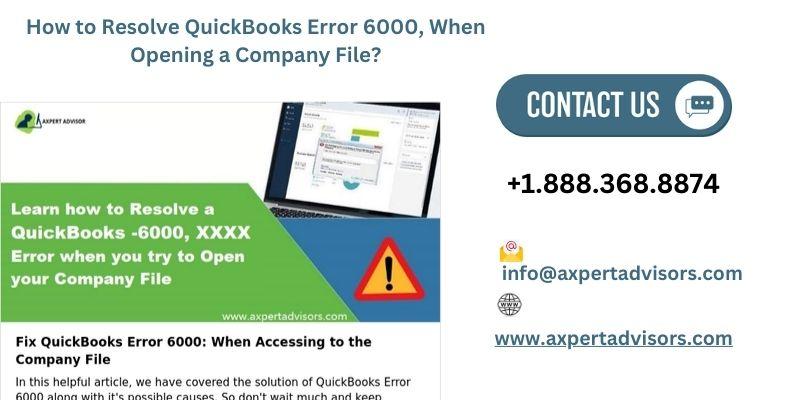 QuickBooks Error 6000 is one of the general error codes that may occur when the user tries to open a company file. Most times the error message reads, "Error 6000, [series of numbers]. This is remarkably frustratingly painful because it does not allow access to financial data and results in day-to-day processing halt age.