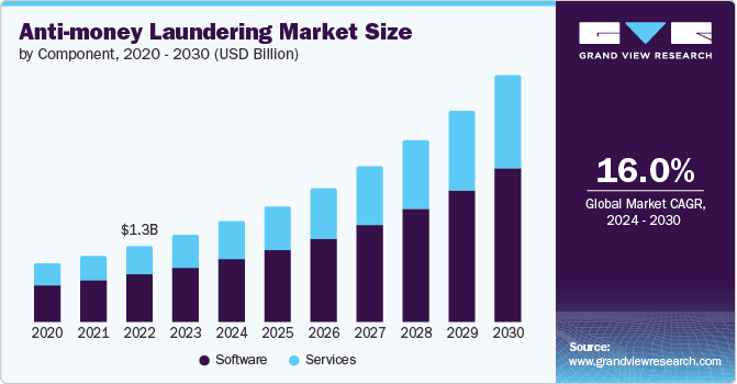 The global anti-money laundering market size was valued at USD 1.51 billion in 2023 and is expected to grow at a CAGR of 16.0% from 2024 to 2030. The growth of the market is driven by increasingly stringent regulations and the need for financial institutions to comply with global standards. Regulatory bodies around the world, such as the Financial Action Task Force (FATF), have been...